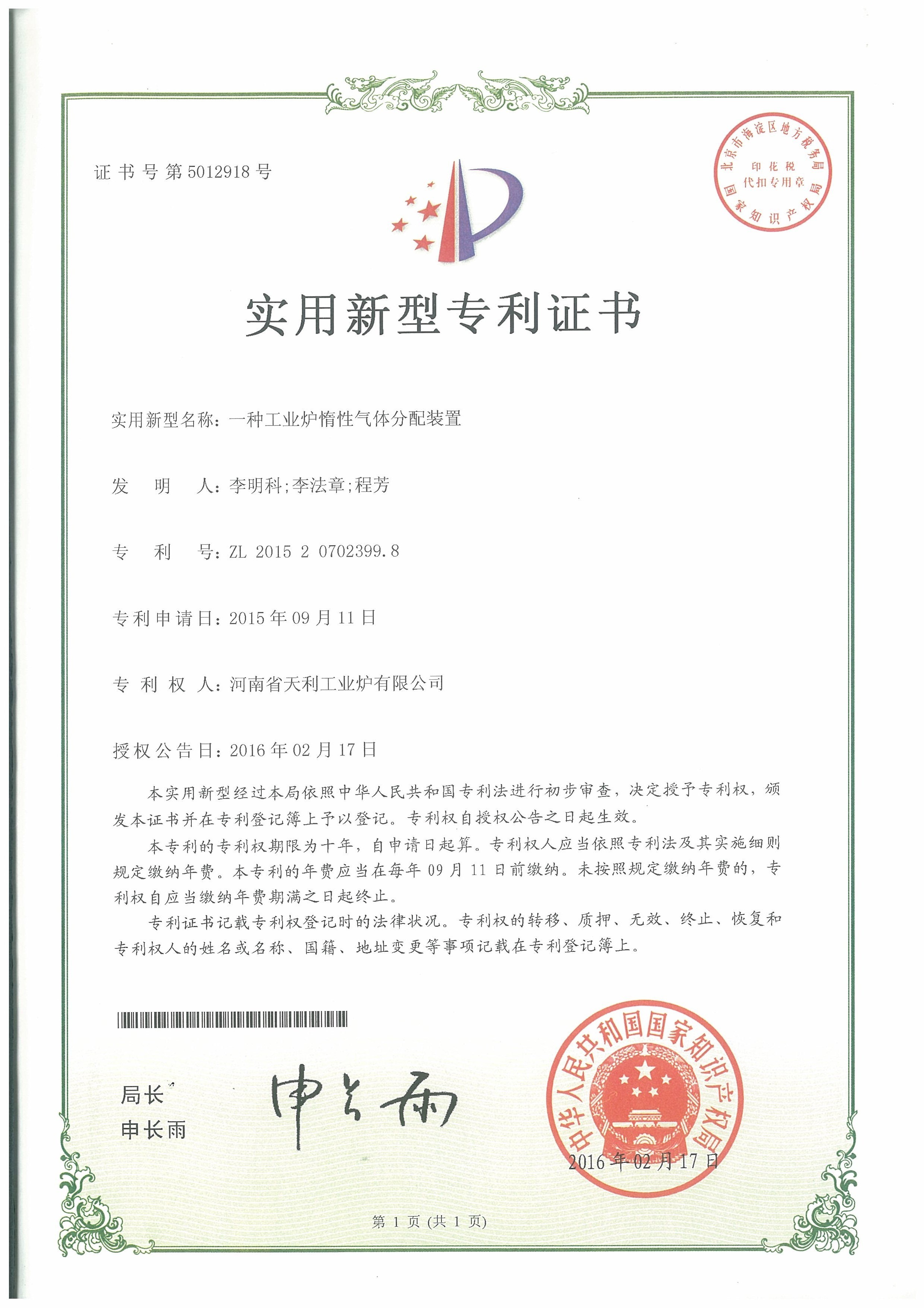 一種工業(yè)爐惰性氣體分配裝置